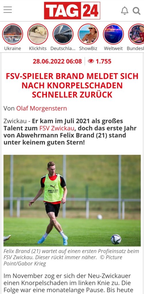Zwickau, 14.06.2022, Sportzentrum Thurm, Fußball, 3. Liga, Saison 22 / 23, Trainingsstart FSV Zwickau , Im Bild: Felix Brand 2, Zwickau *** Zwickau, 14 06 2022, sports center Thurm, soccer, 3 league, season 22 23, training start FSV Zwickau , In the picture Felix Brand 2, ZwickauZwickau, 14.06.2022, Sportzentrum Thurm, Fußball, 3. Liga, Saison 22 / 23, Trainingsstart FSV Zwickau , Im Bild: Felix Brand 2, Zwickau *** Zwickau, 14 06 2022, sports center Thurm, soccer, 3 league, season 22 23, training start FSV Zwickau , In the picture Felix Brand 2, Zwickau